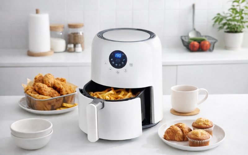 "หม้อทอดไร้น้ำมันดีไซน์มินิมอล ขนาดกะทัดรัด เหมาะสำหรับคอนโดหรือครัวขนาดเล็ก"