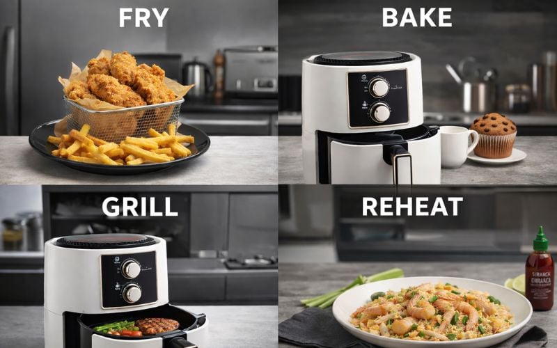 ฟังก์ชันเหล่านี้ช่วยให้หม้อทอดไม่ได้จำกัดแค่เมนูของทอด แต่สามารถใช้แทนเตาอบขนาดเล็กในครัวได้ด้วย