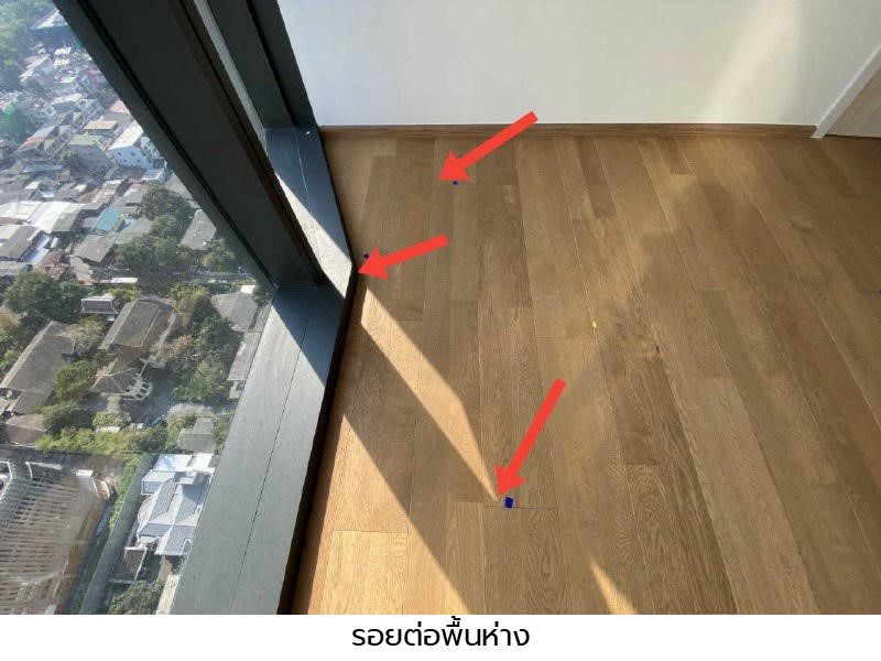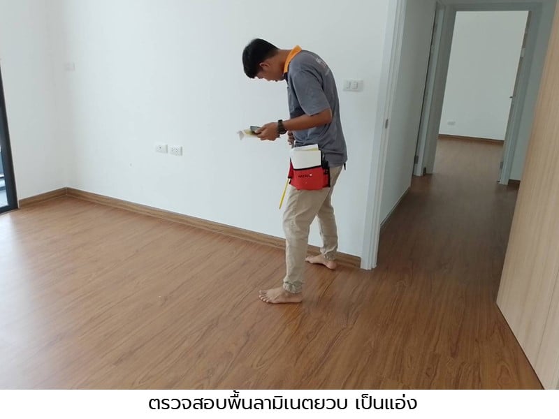 - ตรวจสอบความเรียบร้อยในการติดตั้งของวัสดุ ปูพื้นไม้ลามิเนต และกระเบื้อง
