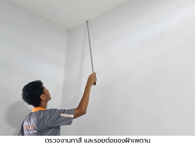 - ตรวจสอบความเรียบร้อยของงานทาสีและรอยต่อแผ่นฝ้าเพดาน