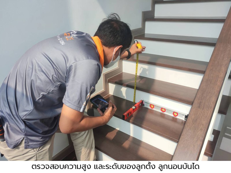 - ตรวจสอบความเรียบร้อยการติดตั้ง ระดับลูกตั้ง ลูกนอน และราวบันได