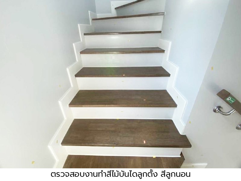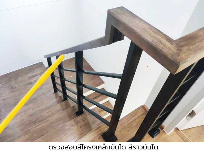 - ตรวจสอบงานทำสีบันไดลูกตั้ง ลูกนอน สีโครง เหล็กบันได สีราวบันได
