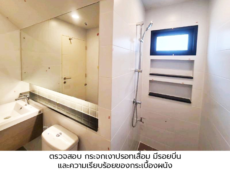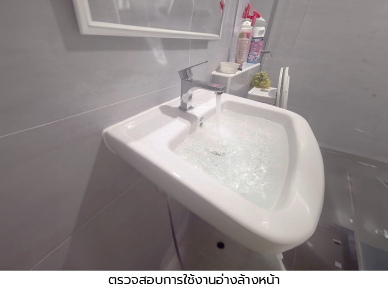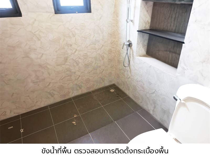 - ตรวจสอบความเรียบร้อยการติดตั้งวัสดุปิดผิวและอุปกรณ์ในห้องน้ำ