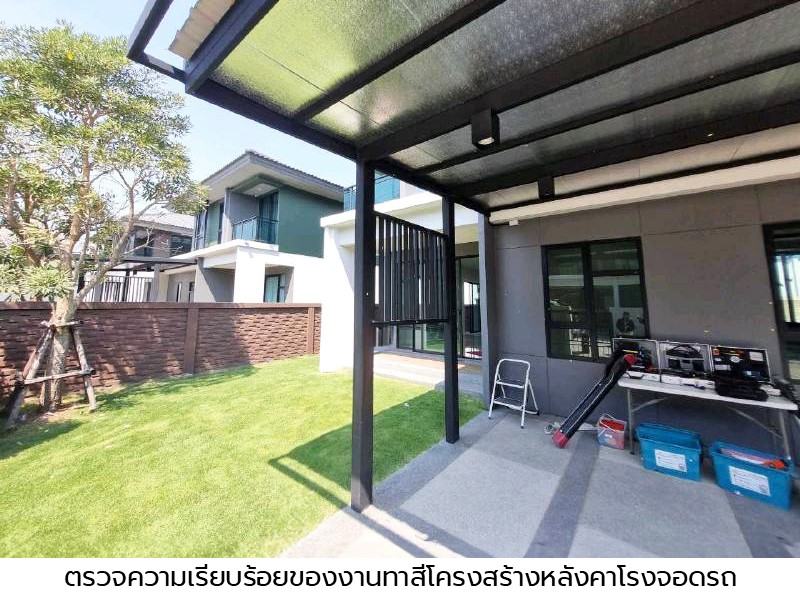- ตรวจสอบความเรียบร้อยงานทาสีภายใน และ ภายนอกทั้งหมด รวมถึงรั้วบ้าน