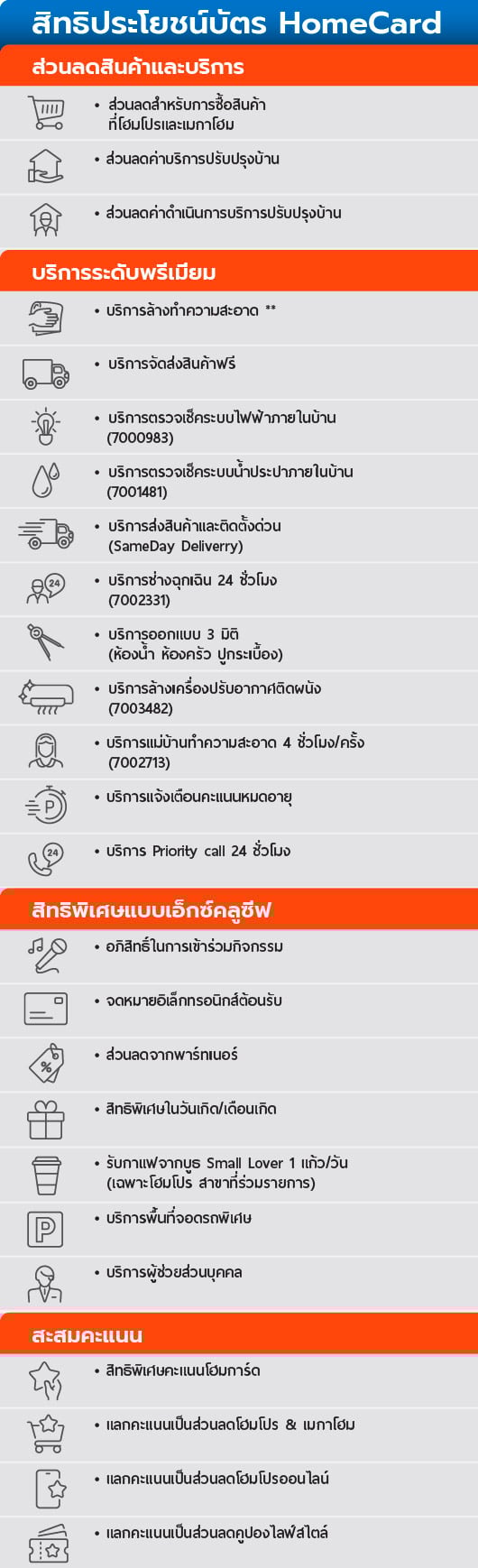 Application, LINE (@HomePro), เว็บไซต์ www.homepro.co.th หรือจุดบริการลูกค้า ณ โฮมโปร