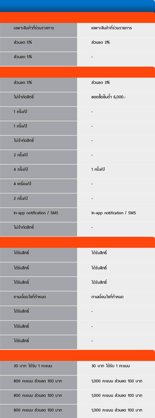 การสะสมคะแนน: ยอดการใช้จ่ายสุทธิทุกๆ 30 บาท จะได้รับ 1 คะแนน