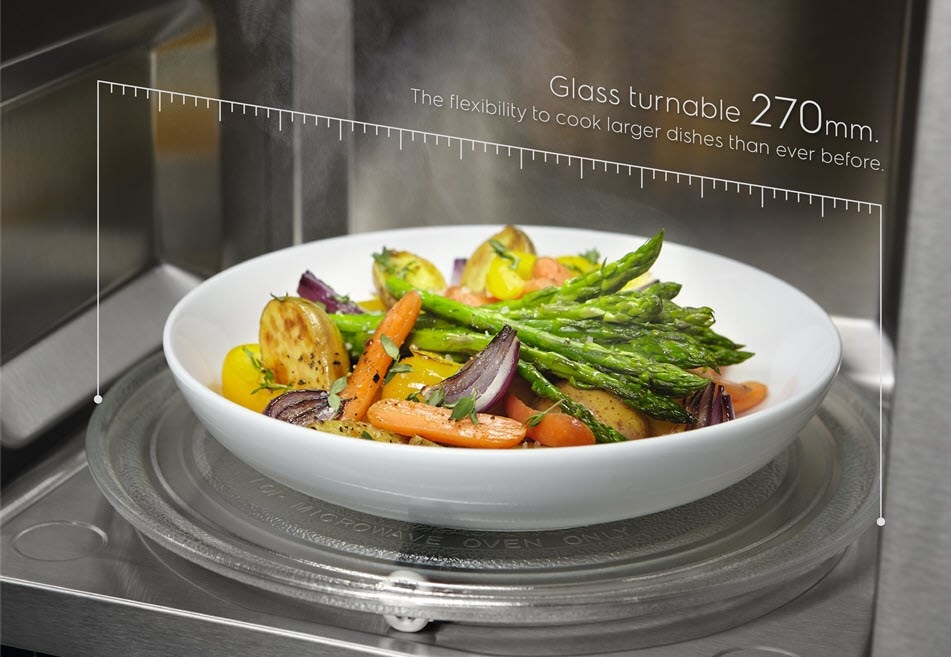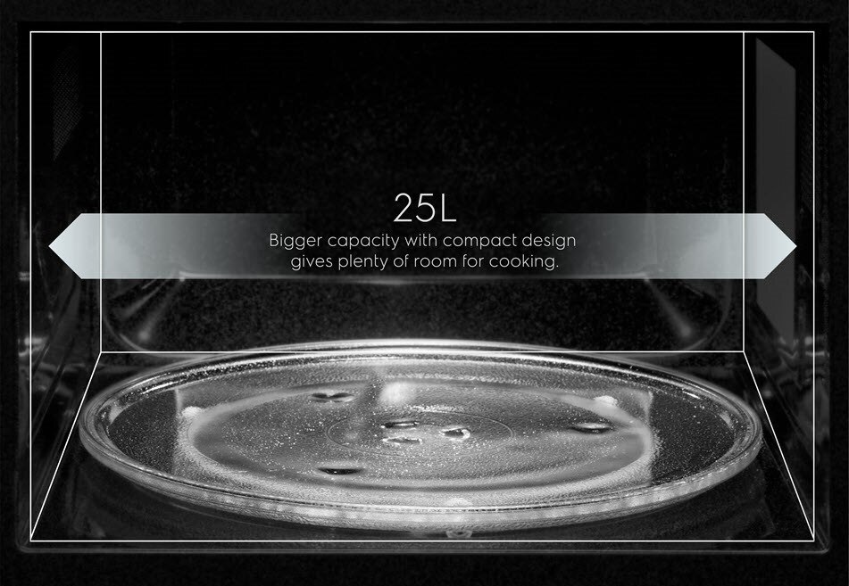 เตาอบไมโครเวฟ ขนาด 25 ลิตร ปรับความร้อนได้ 5 ระดับ โปรแกรมละลายอาหารแช่แข็งอัตโนมัติ รวดเร็วและทั่วถึง สะดวกด้วยโปรแกรมการทำอาหารแบบอัตโนมัติถึง 8 เมนู รวดเร็วด้วยโปรแกรมการทำอาหารเร่งด่วนภายใน 30 วินาที จานหมุนทำจากแก้วขนาด 27 ซม. ให้อาหารสุกอย่างทั่วถึง ใช้งานง่าย ควบคุมการทำงานระบบดิจิตอล พร้อมจอ LED ทำความสะอาดพื้นที่ภายในเตาอบอย่างรวดเร็วและง่ายดาย ประตูกระจกนิรภัย (Tempered Glass) ทนทานต่อแรงกระแทก