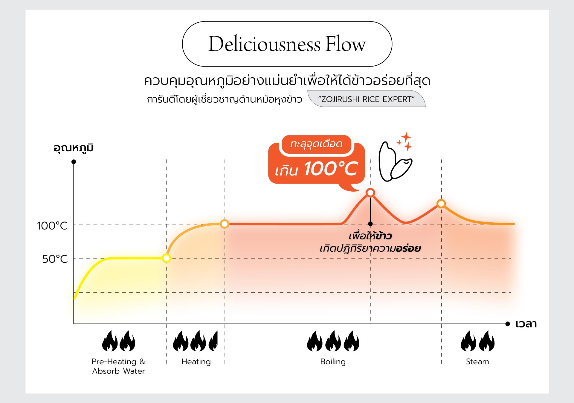 - ระบบเซนเซอร์คู่ เพื่อรักษาอุณหภูมิความร้อนบริเวณกลางหม้อ ช่วยให้ข้าวสุกเท่ากัน และสัมผัสนุ่มอร่อย