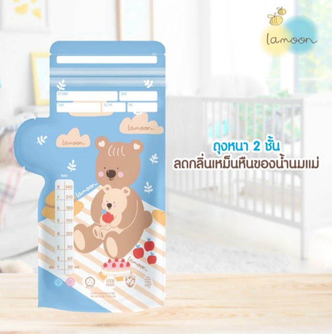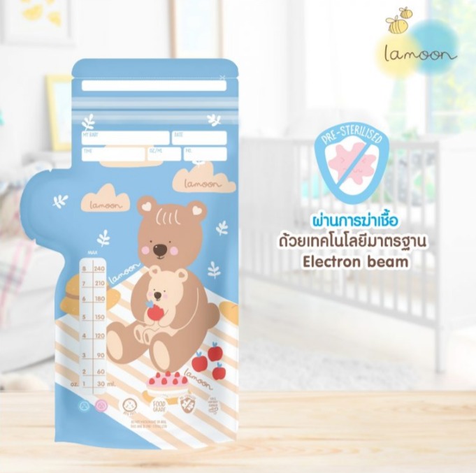 ถุงเก็บน้ำนมแม่ LAMOON 5 ออนซ์ 30 ใบถุงเก็บน้ำนมแม่ LAMOON ผลิตจากพลาสติกเกรดพรีเมี่ยม หนา 2 ชั้นแบบพิเศษ ทำให้โดนอากาศ และความชื้นปกป้องน้ำนมแม่ให้ไม่เกิดกลิ่นเหม็นหืนได้เป็นอย่างดี ถุงทึบแสงช่วยในการคงคุณค่าวิตามิน และคุณค่าสารอาหารในน้ำนมแม่ไว้อย่างครบถ้วน ผ่านการฆ่าเชื้อด้วยเทคโนโลยี มาตรฐานระดับโลก Electron beam เป็นเทคโนโลยีที่ใช้ในการถนอมอาหาร ผลิตด้วยกระบวนการ และวัตถุดิบมาตรฐาน food grade จึงมั่นใจได้ว่าสัมผัสน้ำนมแม่ได้อย่างปลอดภัยไร้กังวล