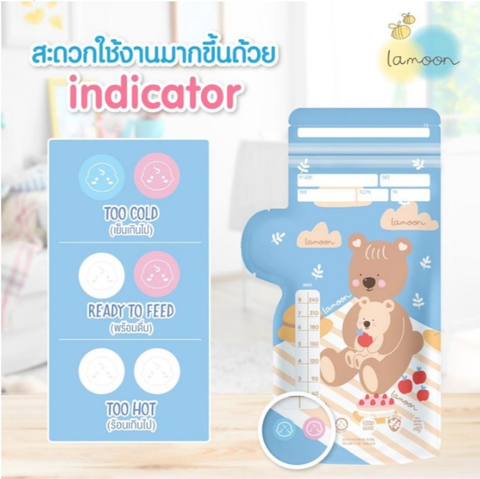 ผ่านการฆ่าเชื้อด้วยเทคโนโลยี มาตรฐานระดับโลก Electron beam สามารถฆ่าเชื้อแบคทีเรีย ยีสต์ รา ได้ ป้องกันน้ำนมเหม็นหืน ด้วยพลาสติก 2 ชั้น เป็นเกราะป้องกันอากาศ และความชื้นเข้า ถุงเก็บน้ำนมแบบทึบแสง ช่วยคงคุณค่าสารอาหารจากน้ำนมแม่ ข้อบ่งบอก indicator บอกอุณหภูมิน้ำนม ตัวช่วยที่จะทำให้ชีวิตคุณแม่ง่ายขึ้น ถุงปิดสนิทด้วยซิปล็อค 2 ชั้น แข็งแรง ป้องกันการรั่วซึมของน้ำนม ป้องกันการปนเปื้อน ด้วยช่องเทแยก จากช่องใส่นม อย่างชัดเจน เทใส่ขวดนมได้ง่ายยิ่งขึ้น ผิวสัมผัสด้านทั้งถุง เขียนข้อมูลได้ง่าย ผิวสัมผัสด้านทั้งถุง เขียนข้อมูลได้ง่าย ซีลขอบข้างหนา 5 มิลลิเมตร หนาคงทน มั่นใจได้ว่าไม่รั่วซึม
