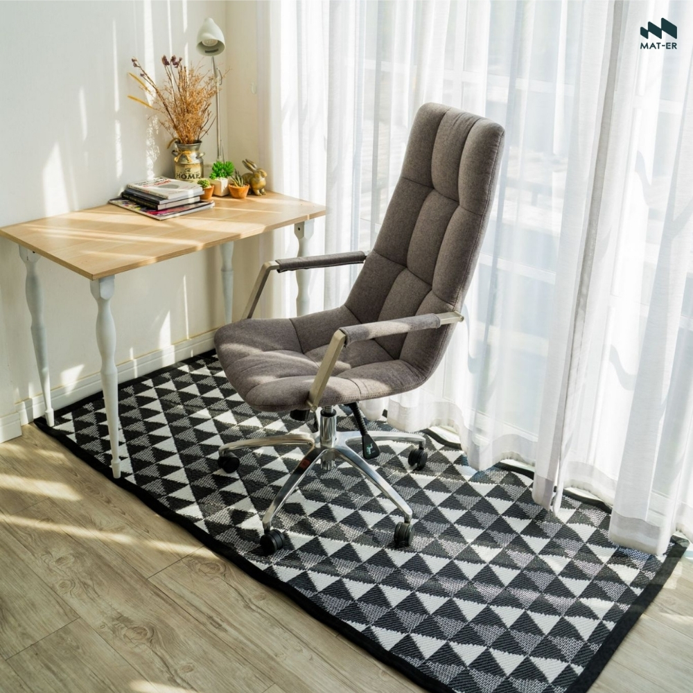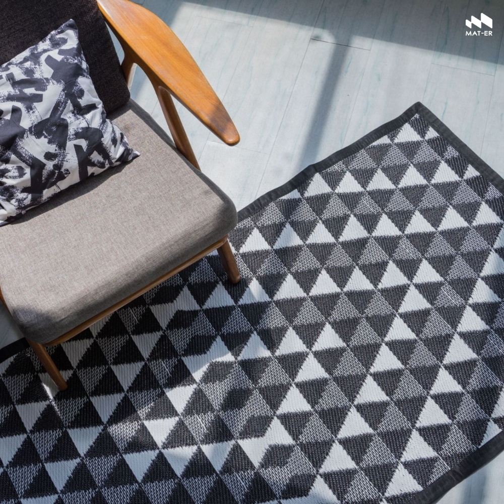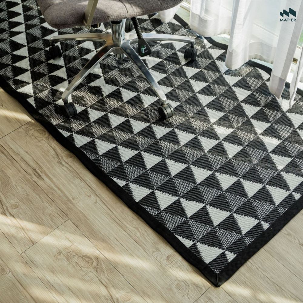 เสื่ออเนกประสงค์ MAT-ER TRIMOND 90x200 ซม. สีดำเปลี่ยนห้องแคบให้กว้างขึ้น ด้วยเสื่อแทนพรมลวดลายเรียบง่ายแต่เปี่ยมด้วยเสน่ห์ จาก MAT-ER ที่เกิดจากการถักทอลายสามเหลี่ยม ที่ได้แรงบันดาลใจมาจากเหลี่ยมมุมของเพชรที่ส่องประกายเล่นกับแสง ชื่อของลายเป็นการผสมคำระหว่าง Diamond (เพชร) และ Tri (สาม) กลายเป็นเสื่อแทนพรมที่มีลายสามเหลี่ยมซ้อนทับกันไล่สีเข้มอ่อน 3 โทน ช่วยเปลี่ยนห้องธรรมดาให้กลายเป็นพื้นที่ที่มีสไตล์และน่าประทับใจยิ่งขึ้นทันที ไม่ว่าบ้านคุณจะตกแต่งแนวโมเดิร์น มินิมอล หรือลอฟท์ เสื่อลายนี้ก็พร้อมเป็นส่วนเติมเต็มที่ลงตัว