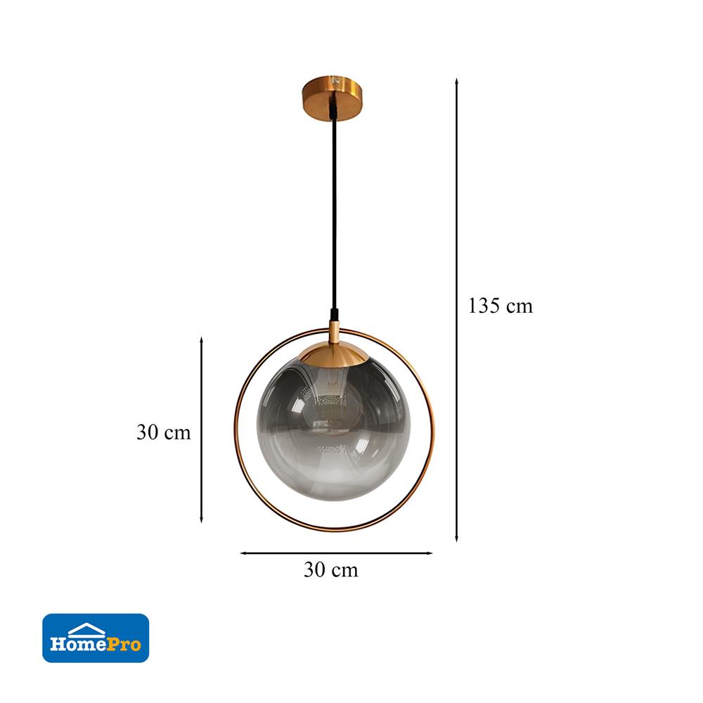 โครงสร้างผลิตจากแก้ว/โลหะ แข็งแรง ดีไซน์รูปทรงกลม ทำสีดำ และทองทันสมัย สามารถใช้กับหลอด LED และหลอดประหยัด ขนาดขั้วหลอด E27 ใช้หลอดไฟจำนวน 1 หลอด ให้แสงสว่างนุ่มนวล และสบายตา สินค้านำเข้าจากต่างประเทศ ผ่านกระบวนการผลิตที่ได้มาตรฐาน ราคาสินค้าเฉพาะโคมไฟเท่านั้นไม่รวมหลอดไฟ