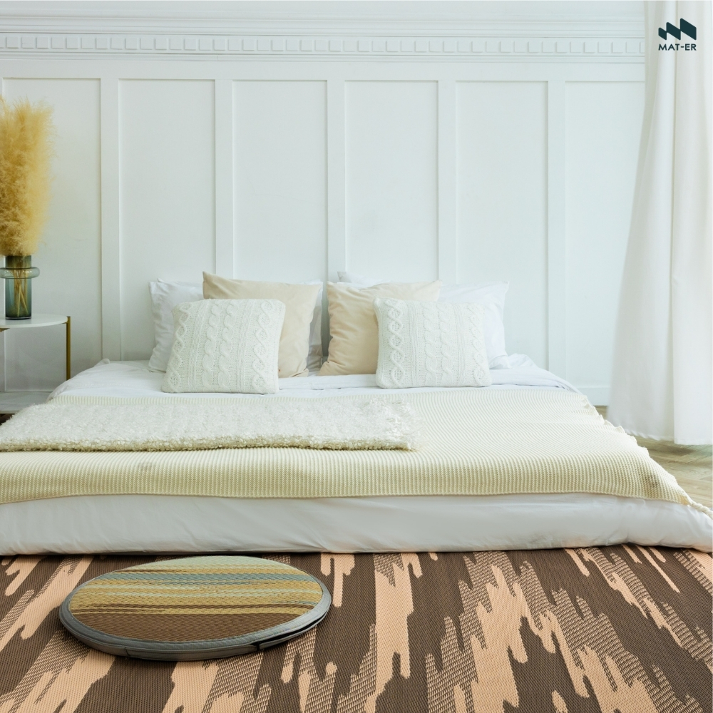 - เสื่อดีไซน์แทนพรมออกแบบลวดลายสีสันร่วมสมัย ไม่เก็บฝุ่น ไม่อมน้ำและไม่ก่อให้เกิดภูมิแพ้
