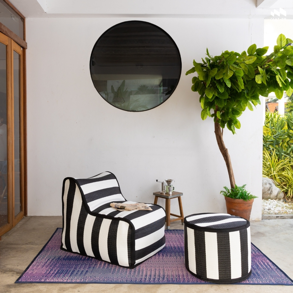 เสื่อดีไซน์แทนพรมออกแบบลวดลายสีสันร่วมสมัย ไม่เก็บฝุ่น ไม่อมน้ำและไม่ก่อให้เกิดภูมิแพ้ ผลิตจากพลาสติก PP รีไซเคิล รับรองมาตรฐาน RCS เพื่อความยั่งยืน เป็นมิตรกับสิ่งแวดล้อม นวัตกรรม UV Inhibitor ที่ช่วยให้เสื่อทนทานต่อแสงแดด ป้องกันไม่ให้เสื่อซีดและเปราะง่าย ถักทอแน่นเย็บริมด้วยผ้า Woven Fabric ที่ใช้ในการผลิตกับ Outdoor เฟอร์นิเจอร์คุณภาพสูง ออกแบบให้ใช้งานได้ 2 ด้าน ไม่จำเจ ช่วยสร้างความโดดเด่นให้พื้นที่พักอาศัยได้เป็นอย่างดี รับประกันคุณภาพ 1 ปี ตามเงื่อนไขที่กำหนด