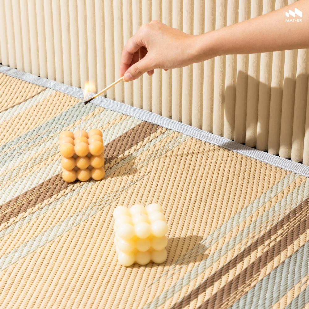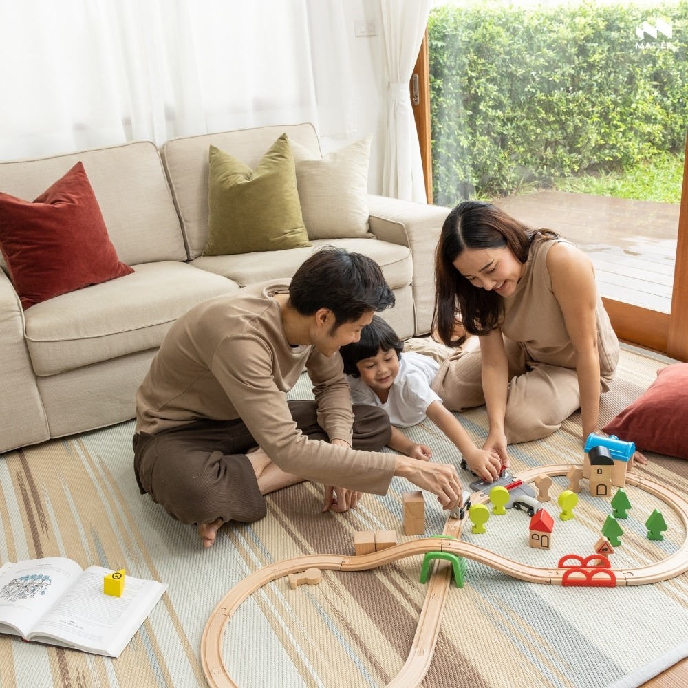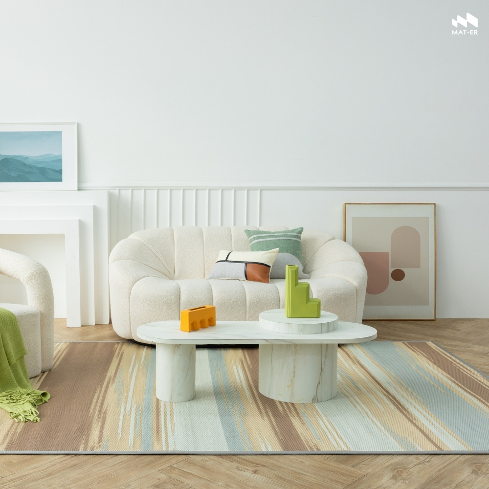 เสื่ออเนกประสงค์ MAT-ER WAA-YU SIZE S 90x200 ซม. สี EARTH TONEWAA-YU วายุ ลวดลายที่ได้รับแรงบันดาลใจจากเส้นสายของสายลมที่ผัดผ่าน ลม คือ ธรรมชาติที่ทําให้เรารู้สึกถึงการมีชีวิต แม้มองไม่เห็นด้วยตาเปล่า บ้านที่ถูกตกแต่งให้รู้สึกสบายกายสบายใจ ผู้อยู่ก็สามารถรับรู้ได้ แม้มองไม่เห็นเช่นกัน ผสมผสานกับการค้นหาความเป็นไปได้ใหม่ของการทอผ้าไทยดั้งเดิมด้วยเทคนิคทอผ้า “มัดหมี่” จากกรรมวิธีการย้อมเส้นด้ายเป็นกลุ่ม นํามาย้อมสีเป็นจังหวะต่างๆ ของเทคนิคการทอผ้ามัดหมี่ Mat-er มองเห็นถึง เอกลักษณ์ และหยิบนํามาออกแบบเป็นลวดลายรูปแบบใหม่ ที่มีความร่วมสมัย ปรับให้เข้ากับสไตล์การแต่งบ้านในยุคปัจจุบันมากขึ้น โดยหยิบองค์ประกอบการทับซ้อนของเส้นด้ายที่เกิดเป็นสีสันด้วยลวดลายเส้นสายกราฟิกที่ไล่ระดับหนาบางสลับกันไป อันเปรียบเสมือนเส้นสายของสายลมที่พัดผ่าน เกิดเป็นลวดลายและสีสันที่มีชีวิตขึ้น โดยยังคง “ราก” ของภูมิปัญญาและวัฒนธรรมไทยของเราอยู่ได้อย่างลงตัว MAT-ER (แมท-เทอร์) “Modern Mat” นักผลิตเสื่อแทนพรม ดีไซน์ลวดลายสีสันร่วมสมัยเหมาะกับการปูพื้นหรือตกแต่งบ้านเข้าได้กับทุกสไตล์การแต่งบ้าน นอกจากความสวยงามที่เราได้มอบให้คุณแล้ว ยังมอบคุณภาพที่ปลอดภัยและสบายใจให้กับผู้ใช้งาน ใส่ใจทุกขั้นตอนการผลิตตั้งแต่การเลือกวัสดุพลาสติกที่รักษ์โลก พิถีพิถันในการทอ เสื่อของเราทอแน่น คงทน ป้องกันรังสี UV ที่ช่วยให้เสื่อทนทานต่อแสงแดด ป้องกันไม่ให้เสื่อซีดและเปราะง่าย เย็บริมด้วยผ้า Woven Fabric ที่ใช้ในการผลิตกับ Outdoor เฟอร์นิเจอร์คุณภาพสูง มั่นใจได้เลยว่าเสื่อของเราจะอยู่คู่บ้านสวยกับคุณได้ทั้งภายในและบริเวณนอกบ้านได้ยาวนานไม่ฉีกขาดง่าย และเสื่อของเรายังออกแบบมาให้ใช้งานได้ทั้ง 2 ด้าน ยืดอายุการใช้งาน สลับฝั่งกันได้ไม่จำเจ ที่สำคัญเสื่อแทนพรมของเราไม่อมฝุ่น ไม่ก่อให้เกิดภูมิแพ้ ดูแลทำความสะอาดง่าย เป็นมิตรต่อเด็ก สัตว์เลี้ยง และเป็นมิตรต่อโลกอีกด้วย