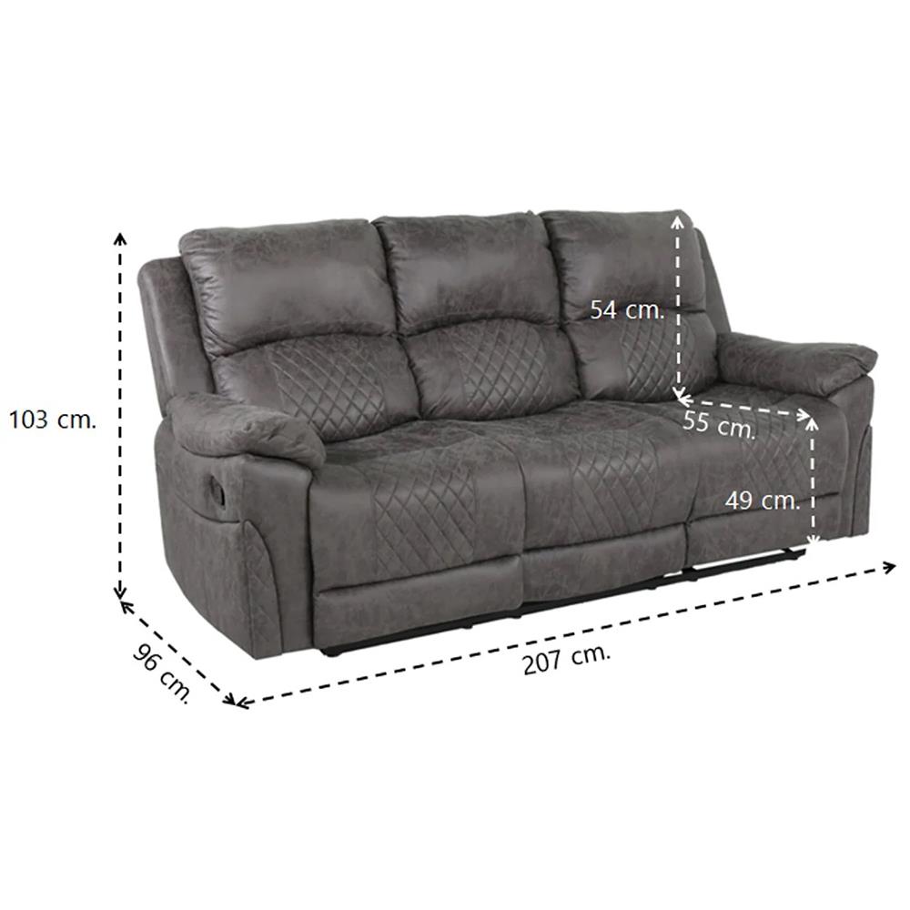 RECLINER 3 ที่นั่ง SB FURNITURE MONKI HQ-08 สีเทาทิ้งตัวลงพักผ่อนได้อย่างสบายตัว ด้วย Recliner จาก SB FURNITURE มาพร้อมสลักเพื่อดึงปรับเอนด้านข้าง คุณสามารถปรับเอนนอนได้ง่ายด้วยมือเดียว แข็งแรงด้วยโครงสร้างจากไม้มาตรฐาน E1 รองรับน้ำหนักได้ดี พนักพิง เบาะนั่ง และที่วางแขนบุด้วยฟองน้ำหนานุ่ม หุ้มด้วยผ้าลายหนังนำเข้าจากต่างประเทศ ให้สัมผัสเรียบลื่นเป็นพิเศษ เบาะ 3 ที่นั่ง กว้างขวาง ให้คุณนั่งได้เต็มตัว รองรับสรีระได้พอดี ดีไซน์สวยงามในสไตล์โมเดิร์น สามารถวางเพื่อตกแต่งห้องนั่งเล่น หรือห้องรับแขกได้อย่างลงตัว