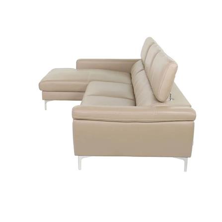 โซฟาเข้ามุมซ้าย SB FURNITURE GEEZER สีน้ำตาลอ่อนโซฟาเข้ามุมซ้าย จาก SB FURNITURE โดดเด่นด้วยดีไซน์เรียบสวยสไตล์โมเดิร์น โครงสร้างไม้ที่มีความแข็งแรง บุด้วยโฟมคุณภาพดีที่มีความยืดหยุ่นสูง นั่งนุ่มสบาย หุ้มด้วยหนังแท้ผิวสัมผัสที่นำเข้าจากต่างประเทศ จึงให้ผิวสัมผัสที่นุ่ม รองรับการนั่งทุกอิริยาบถได้อย่างสบายตัว ให้คุณรู้สึกผ่อนคลายจากความเหนื่อยล้าได้เป็นอย่างดี มาพร้อมขาเหล็ก มีความแข็งแรง จึงรองรับน้ำหนักได้เป็นอย่างดี ทั้งยังดูแลรักษาทำความสะอาดได้ง่าย ตอบโจทย์การใช้งานและการตกแต่งได้อย่างลงตัว