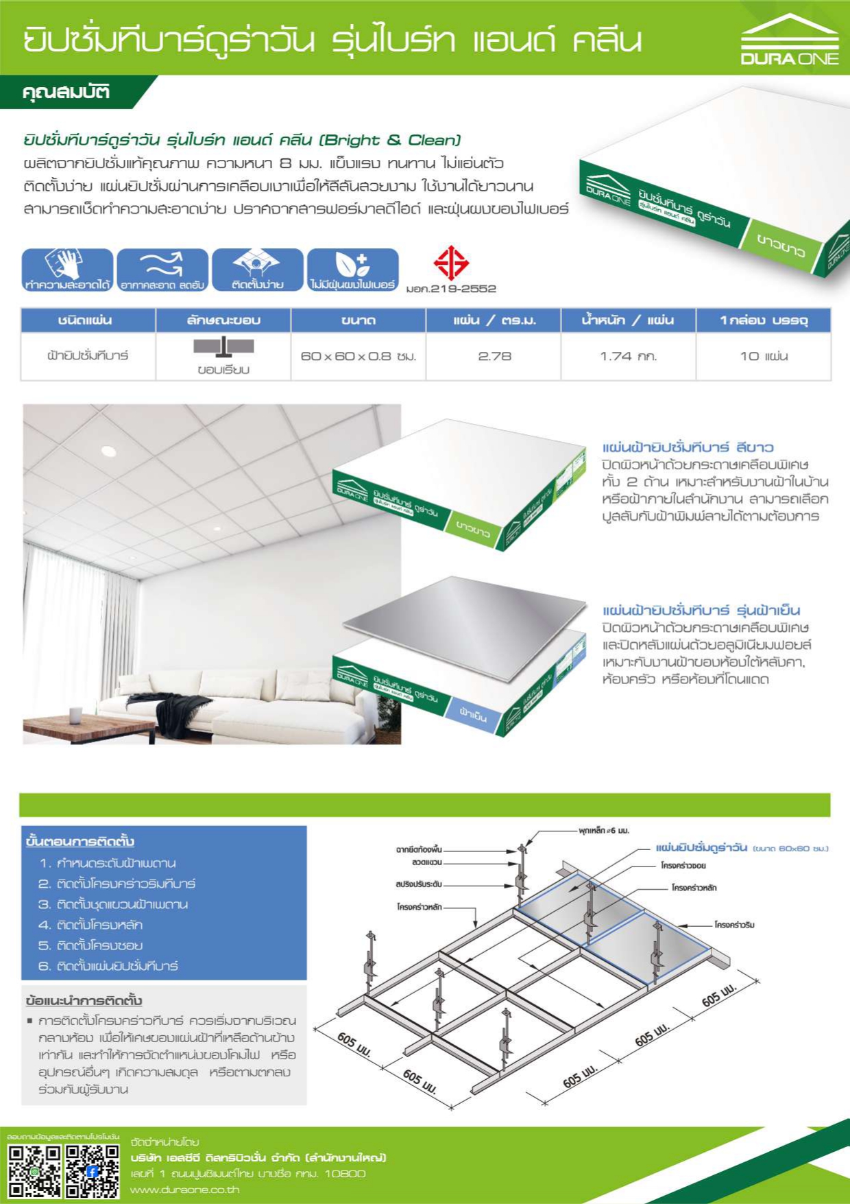 - แผ่นฝ้าสะท้อนแสงได้ดี ทำให้ภายในห้องมีความสว่าง สบายตา