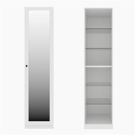 ตู้โชว์บานกระจก โครงสร้างผลิตจากไม้ปาร์ติเกิลบอร์ดคุณภาพดี พร้อมชั้นวาง 5 ชั้น ไม้มาตรฐาน E1 มีสารฟอร์มัลดีไฮด์น้อยกว่า 0.005% ไม่ทำให้เกิดการระคายเคืองต่อระบบทางเดินหายใจ ดีไซน์หน้าบานกระจกเงาเต็มบานตัดกับกรอบสีขาว แผ่นชั้นกว้าง จัดวางสิ่งของได้เยอะ เป็นระเบียบยิ่งขึ้น หน้าบานเปิดขวา ใช้งานง่าย เปิด-ปิด ได้สะดวก จัดโชว์สิ่งของได้อย่างสวยงาม เข้ากับห้องได้หลากหลายสไตล์