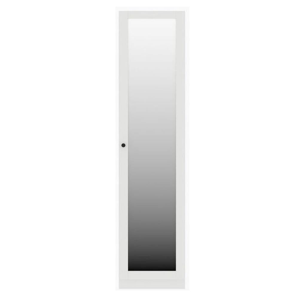 โครงสร้างผลิตจากไม้ปาร์ติเกิลบอร์ด มาตรฐาน E1 ไม่ทำให้เกิดการระคายเคืองต่อระบบทางเดินหายใจ ดีไซน์หน้าบานเปิดฝั่งขวา เข้ากรอบสีขาวตัดกับกระจกเงาแบบเต็มบาน เพิ่มความหรูหรา ราวแขวนอะลูมิเนียม พร้อมช่องเก็บของด้านบนและล่าง สำหรับใส่ของใช้อเนกประสงค์ มาพร้อมไฟ LED Sensor สะดวกต่อการหาสิ่งของได้ง่ายยิ่งขึ้น ฟังก์ชันระบบ Soft Close ช่วยลดแรงกระแทก ปราศจากเสียงดังรบกวนในขณะปิดหน้าบาน