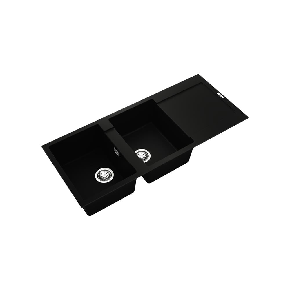 อ่างล้างจาน 2 หลุม สีดำผิวด้าน แบบติดตั้งบนเคาน์เตอร์ พื้นผิวแข็งแกร่ง ทนทานต่อรอยขีดข่วนและอุณหภูมิสูงด้วยวัสดุหินแกรนิตสังเคราะห์ Tegranite มีส่วนผสมควอตซ์ 80% และเรซิน พื้นผิวปราศจากแบคทีเรียและทำความสะอาดง่าย ทั้งยังทนต่อรังสี UV สีไม่ซีดจางง่าย ความลึกหลุม 20 ซม. ล้างจานได้สะดวกคล่องตัว และใช้งานได้หลากหลายมากยิ่งขึ้นด้วยหลุมอ่างถึง 2 หลุม สะดือขนาด 3.5 นิ้ว พร้อมอุปกรณ์ในชุดมาพร้อมสะดืออ่าง ท่อน้ำทิ้ง และก๊อกซิงค์ เพื่อเพิ่มความสะดวกต่อการใช้งาน ขนาดเจาะเฟอร์นิเจอร์ 114x48 ซม. สามารถติดตั้งให้ที่พักอยู่ได้ทั้งฝั่งซ้ายและฝั่งขวาตามความถนัด