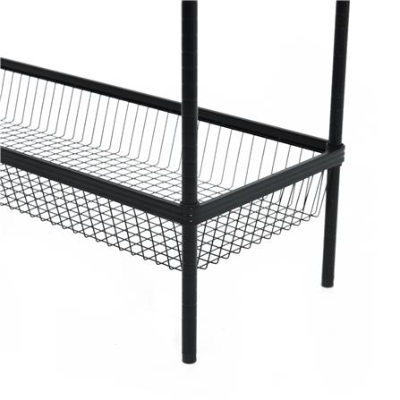 ชั้นวางอเนกประสงค์ 3 ชั้น มาพร้อมตะกร้าบริเวณชั้นล่างขนาดความลึก 5 นิ้ว สามารถจุของได้เยอะ โครงสร้างผลิตจากเหล็กทำสี เนื้อเงางาม รองรับน้ำหนักได้ถึง 50 กก.ต่อชั้น (แบบกระจายน้ำหนัก) แผ่นชั้นวางและตะกร้าทำจากลวดตะแกรงโปร่ง สามารถปรับระดับสูง-ต่ำ ได้ตามต้องการ ดีไซน์ตัวชั้นวางของแบบโล่ง ระบายอากาศได้ดี สามารถจัดเก็บหรือหยิบจับสิ่งของได้อย่างสะดวก