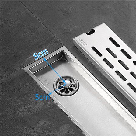 ผลิตจากสเตนเลส 304 ทนทานต่อการกัดกร่อน ทนทานต่อการเกิดสนิม มีท่อระบายน้ำด้านข้าง การออกแบบตะแกรงมาตรฐานเนียบเรียบเสมอพื้นผิวทำให้น้ำไหลลงได้ง่าย ป้องกันแมลงจากท่อน้ำ รวมถึง ยุง โดยไม่ต้องเดินท่อใหม่ มาพร้อมฟังก์ชันการดับกลิ่นอัตโนมัติ โดยอาศัยแรงโน้มถ่วง มีลิ้นป้องกันกลิ่นไหลย้อนกลับ และแมลง รางน้ำทิ้งแบบตะแกรงกันกลิ่น เหมาะสำหรับการใช้ในพื้นที่เปียก และต้องการปลอดกลิ่น ปลอดแมลงรบกวน ขนาดท่อที่ใช้กับรางน้ำทิ้งคือขนาด 2-3 นิ้ว