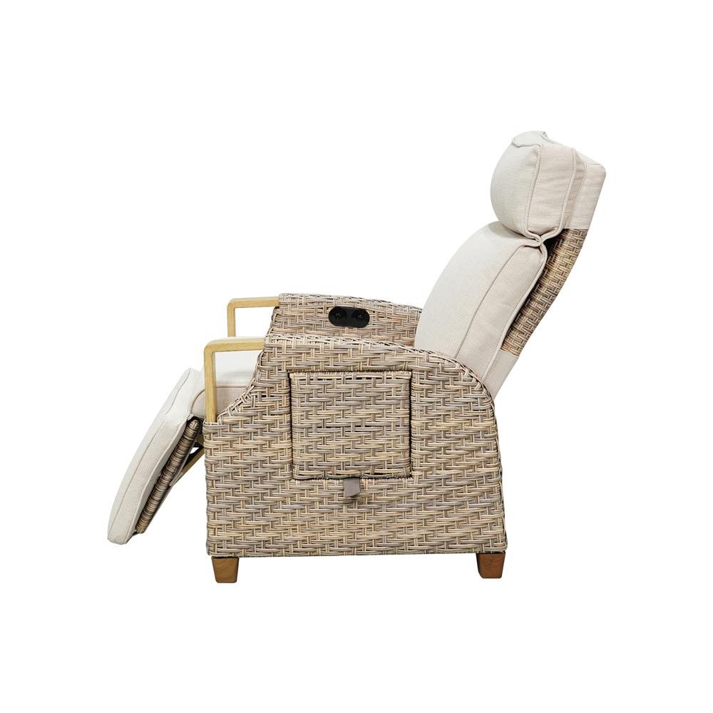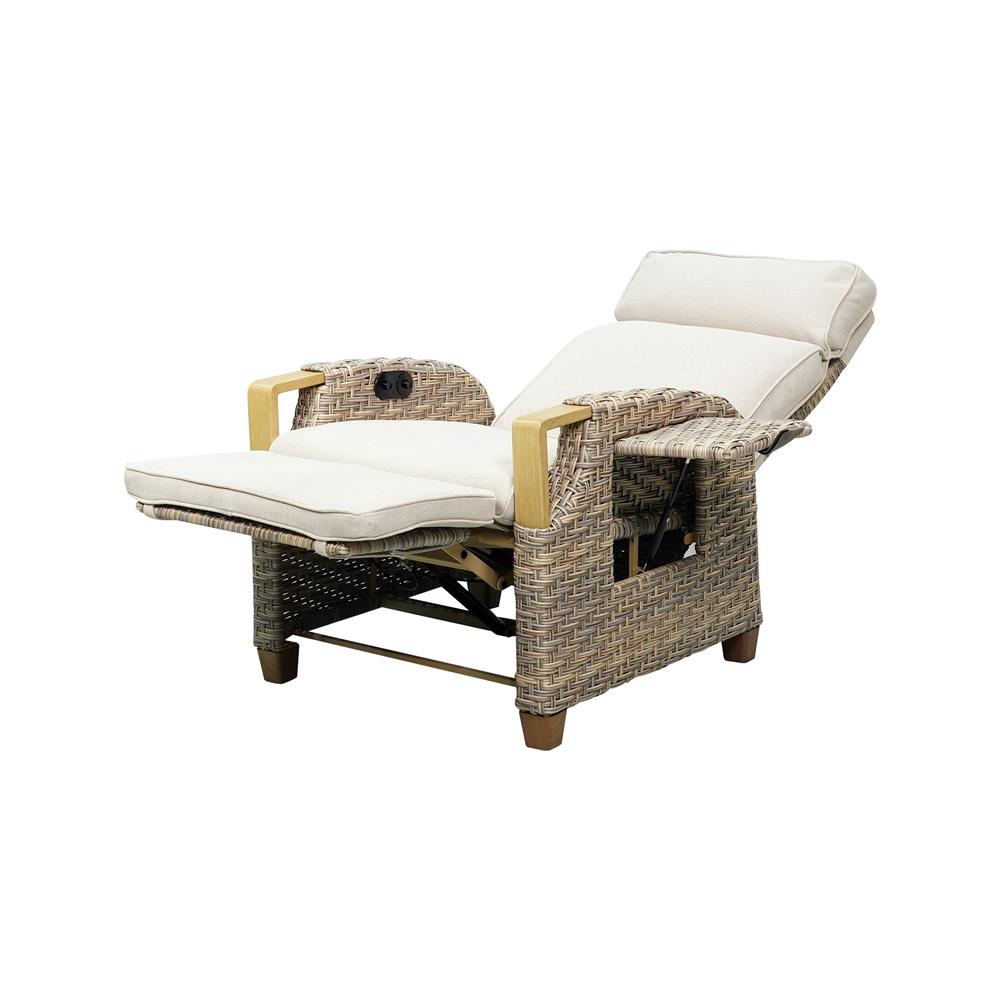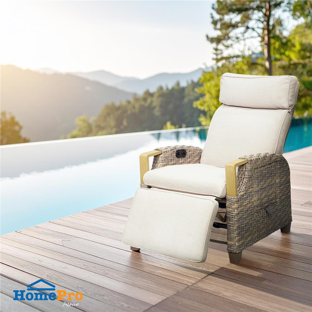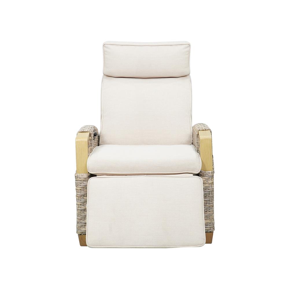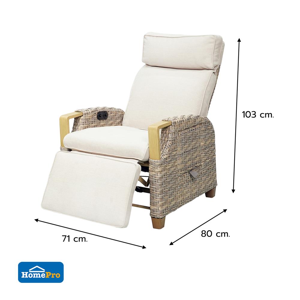 โครงสร้างทำจากเหล็กแข็งแรง หุ้มหวายเทียมที่ถักทอด้วยความประณีต สวยงาม ฐานมีความมั่นคงแข็งแรง สามารถรับน้ำหนักผู้ใช้งานได้สูงสุดถึง 120 กิโลกรัม (แบบกระจายน้ำหนัก) เก้าอี้ขนาดกว้างขวางปรับเอนนอนได้ตามต้องการ มาพร้อมเบาะรองขาเพิ่มความสบายในการนั่งผักผ่อน เบาะนั่งทำจากผ้าโพลีเอสเตอร์ ที่ช่วยกันละอองน้ำได้ดี มีความยืดหยุ่นสูง สามารถระบายอากาศได้ดี