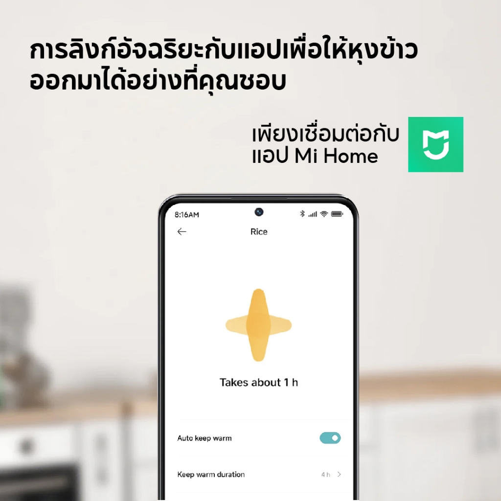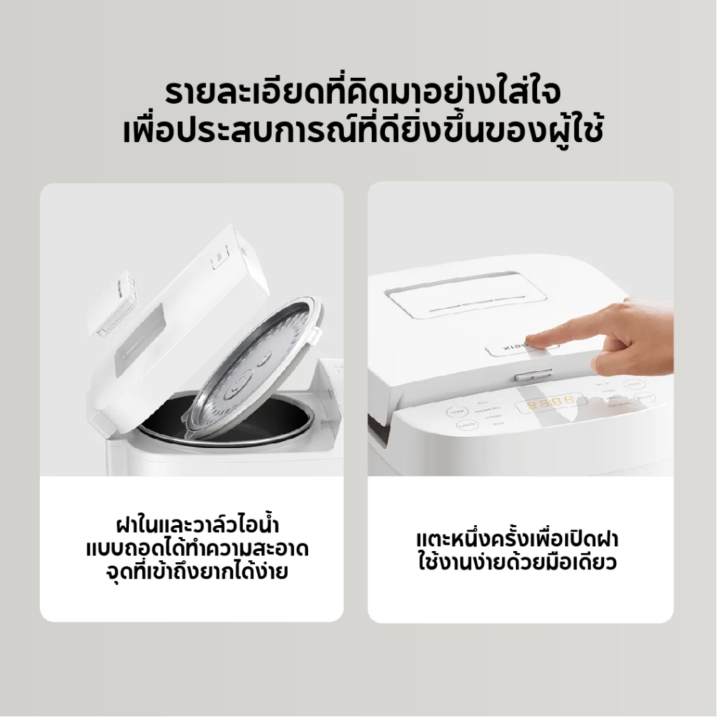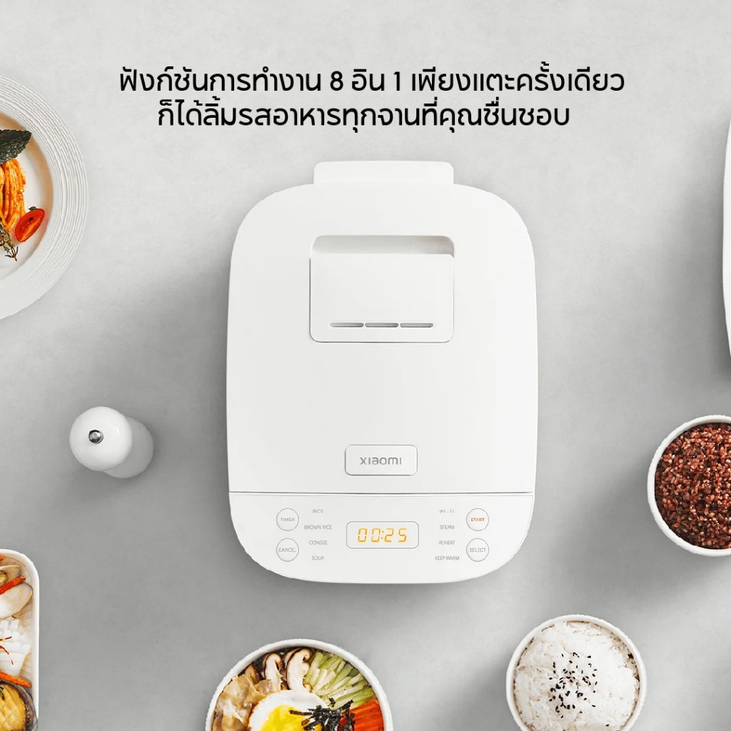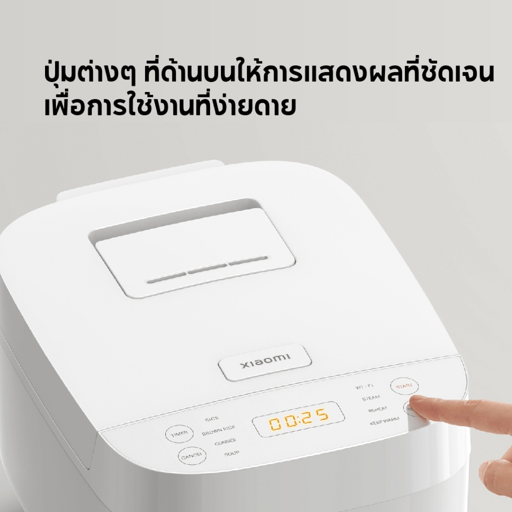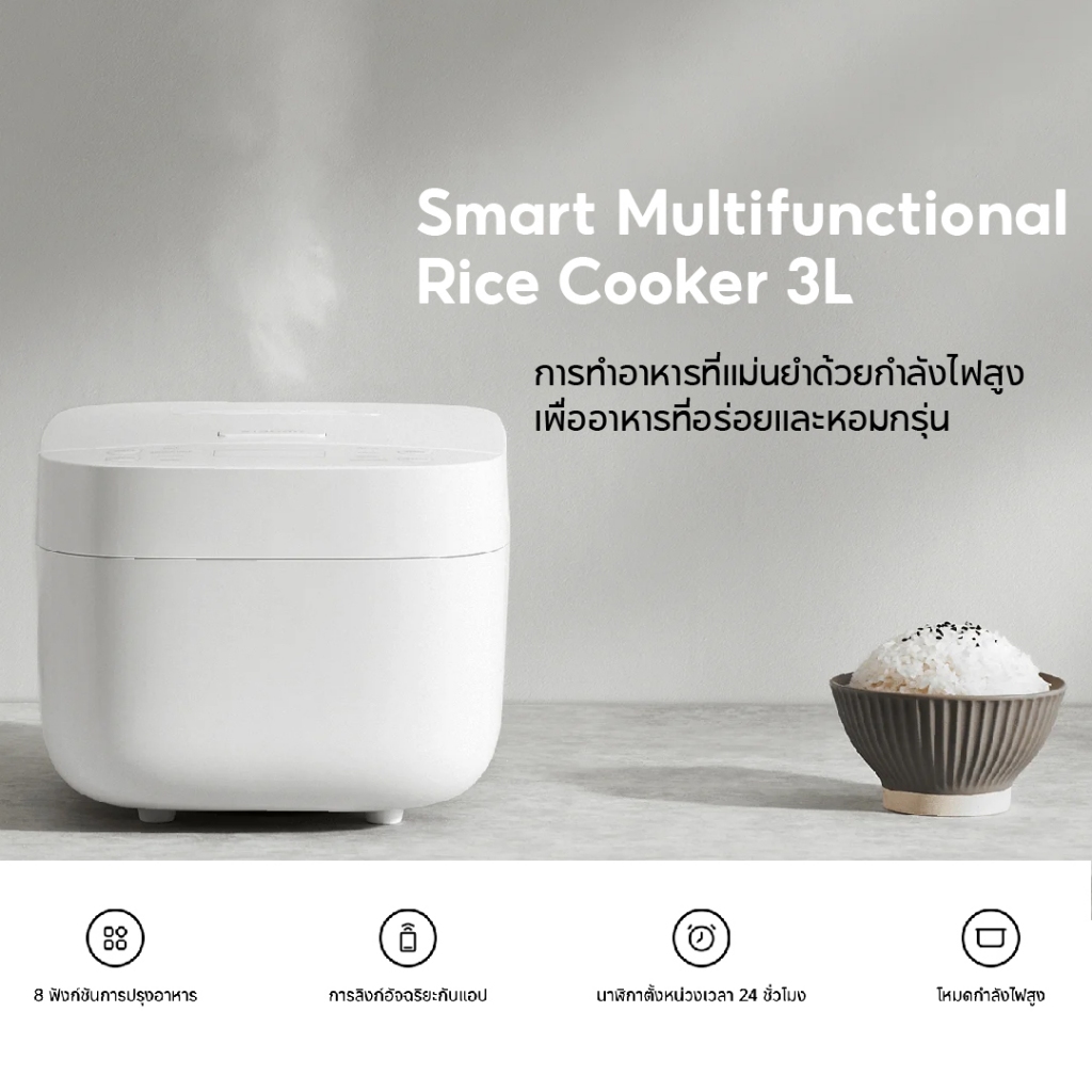 หม้อหุงข้าว DIGITAL XIAOMI XIAOMI_RICE 3 ลิตร สีขาวการทำอาหารที่แม่นยำด้วยกำลังไฟสูงเพื่ออาหารที่อร่อยและหอมกรุ่น มาพร้อมฟังก์ชันการทำงานที่หลากหลาย เพียงแตะครั้งเดียวก็ได้ลิ้มรสอาหารทุกจานที่คุณชื่นชอบ สามารถเชื่อมต่อเข้ากับแอปฯ Mi Home เพื่อควบคุมโปรแกรมการทำอาหารจากระยะไกล สามารถตั้งเวลาล่วงหน้า 24 ชม. จะทำให้คุณได้ทานอาหารจานร้อนได้ทุกเมื่อที่ต้องการ และมีเซนเซอร์สองตัวที่ด้านบนและล่างคอยเฝ้าติดตามอุณหภูมิในการทำอาหารอย่างต่อเนื่อง และปรับกำลังไฟให้เหมาะสมโดยอัตโนมัติเพื่อป้องกันไม่ให้ข้าวสุกจนล้นหม้อ