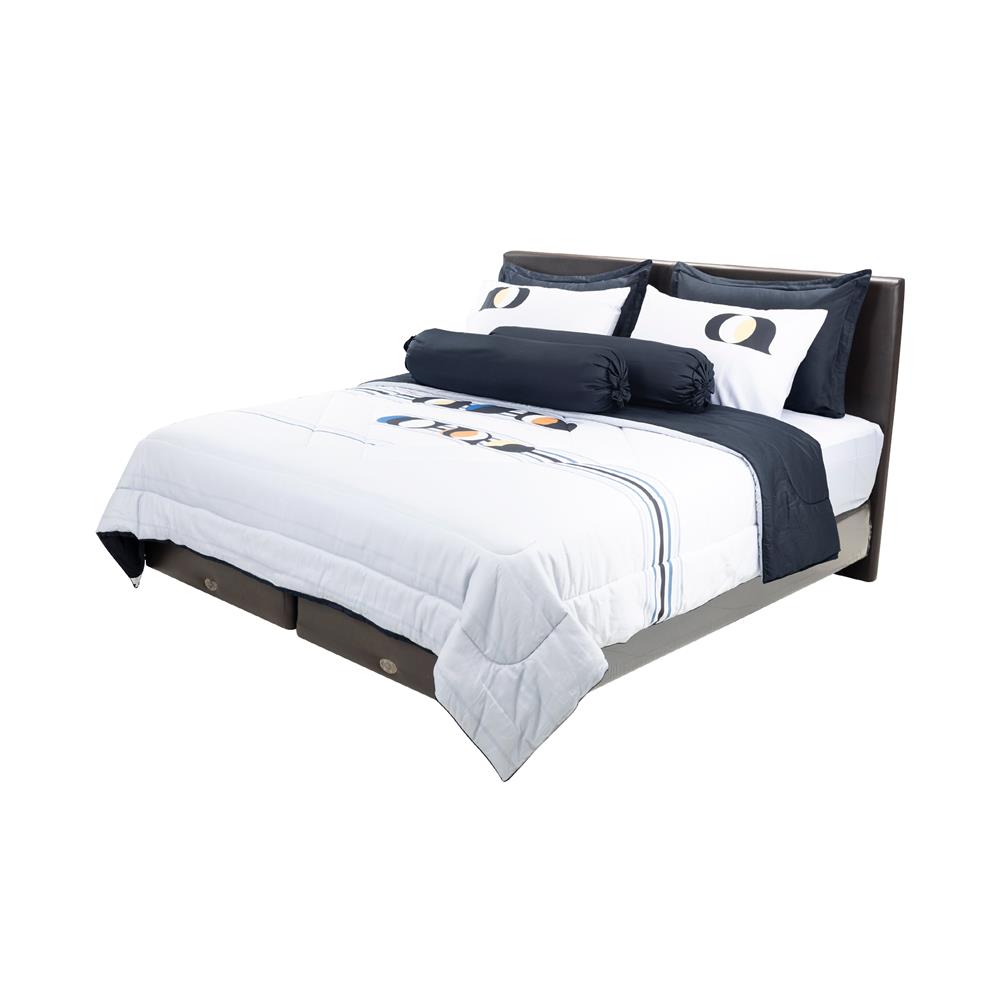 ผลิตจาก COTTON 100% ผ่านการทอแบบ SATEEN เนื้อผ้านุ่มลื่นอ่อนโยนต่อผิว ไม่ฉีกขาดง่าย ระบายอากาศได้ดี ทอแบบไร้รอยต่อ ด้วยความละเอียด 350 เส้นด้าย/10 ตร.ซม. (จำนวนเส้นด้ายยิ่งสูง เนื้อผ้ายิ่งแน่นและละเอียด) นวัตกรรม Soft-Touch ช่วยเพิ่มความนุ่มให้กับเนื้อผ้า มอบสัมผัสเรียบเนียน และเย็นสบายขณะนอนหลับ ผสานเทคโนโลยี MICROBAN ลงบนเนื้อผ้า จึงช่วยลดการสะสมของไรฝุ่น และช่วยยับยั้งการเจริญเติบโตของแบคทีเรียและเชื้อรา ดีไซน์พิมพ์ด้วยลวดลายที่สวยงาม เพิ่มความโดดเด่นให้กับพื้นที่และเข้ากับห้องนอนได้หลากหลายสไตล์ ปราศจากสารก่อมะเร็ง ฟอร์มาลดีไฮด์ และสารเคมีอันตราย ตามมาตรฐานสากลระดับโลกจาก Oeko-Tex Standard 100 สะดวกสบายด้วยผ้าปูที่มียางรัดมุม 4 ด้าน ช่วยให้การปูเตียงเป็นเรื่องที่ง่ายยิ่งขึ้น จำนวน 6 ชิ้นต่อชุด (ผ้าปูที่นอน 1 ผืน / ปลอกหมอนข้าง 2 ใบ / ปลอกหมอนหนุน 2 ใบ / ผ้านวม 1 ผืน)