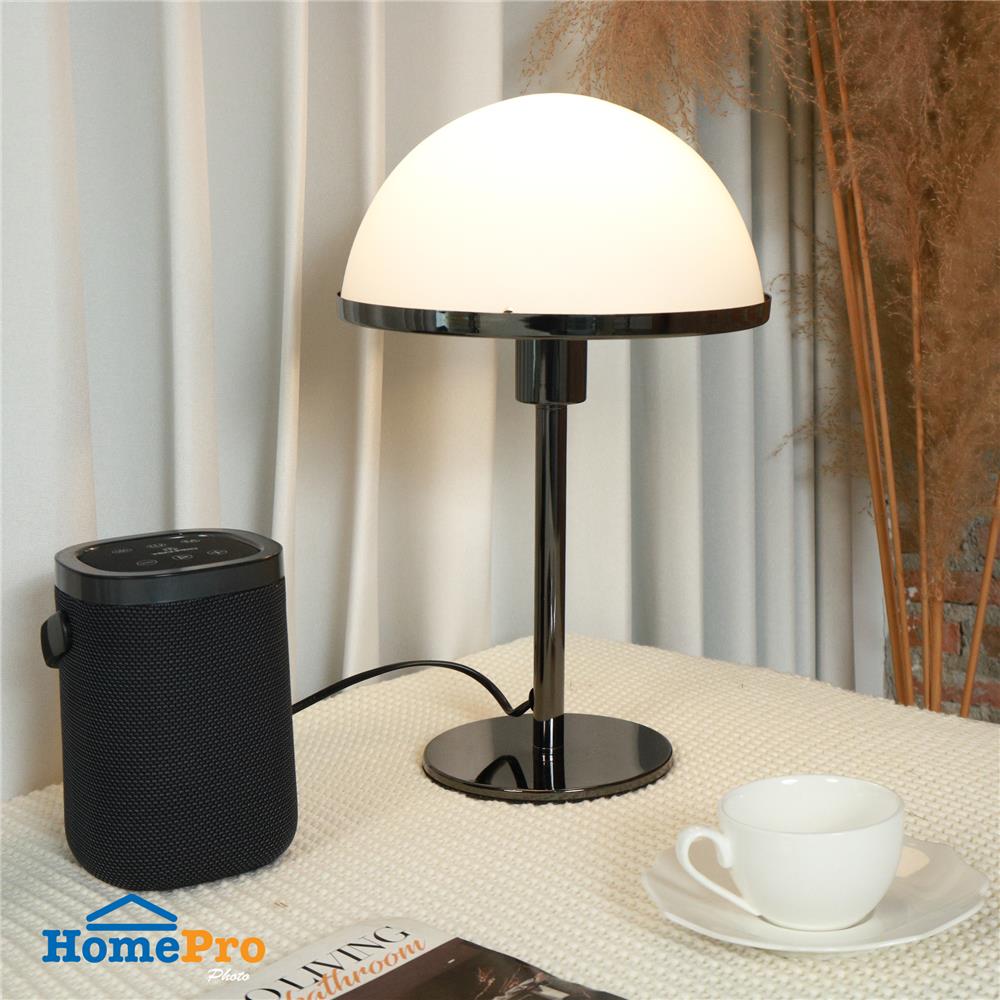 โป๊ะโคมทำจากแก้วสีใสเนื้อหนา ให้แสงนุ่มนวล สามารถกระจายแสงสม่ำเสมอ ใช้งานร่วมกับหลอดไฟขั้วหลอดมาตรฐาน E27 จำนวน 1 หลอด ได้ทุกโทนแสง มาพร้อมความยาวสายไฟ 1.3 เมตร สะดวกต่อการเคลื่อนย้ายใช้งานได้ทุกพื้นที่ เพิ่มความโดดเด่นด้วยเสาก้านโคมทำจากโลหะสีดำตัดเข้าดับโคมได้อย่างลงตัว เหมาะสำหรับตั้งบริเวณห้องนั่งเล่น, ห้องรับแขก หรือห้องนอน เพื่อตกแต่งบ้าน สินค้าเฉพาะโคมไฟเท่านั้น ไม่รวมหลอดไฟ