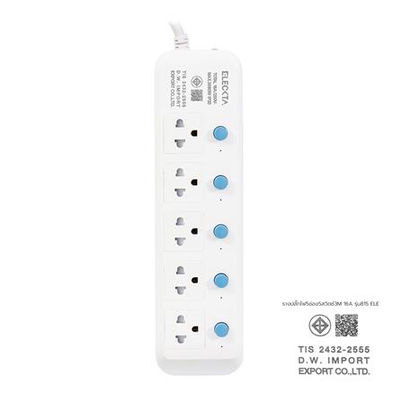 รางปลั๊กไฟ 5 ช่อง 5 สวิตซ์ ELECKTA 815 16 แอมป์ 3 ม.