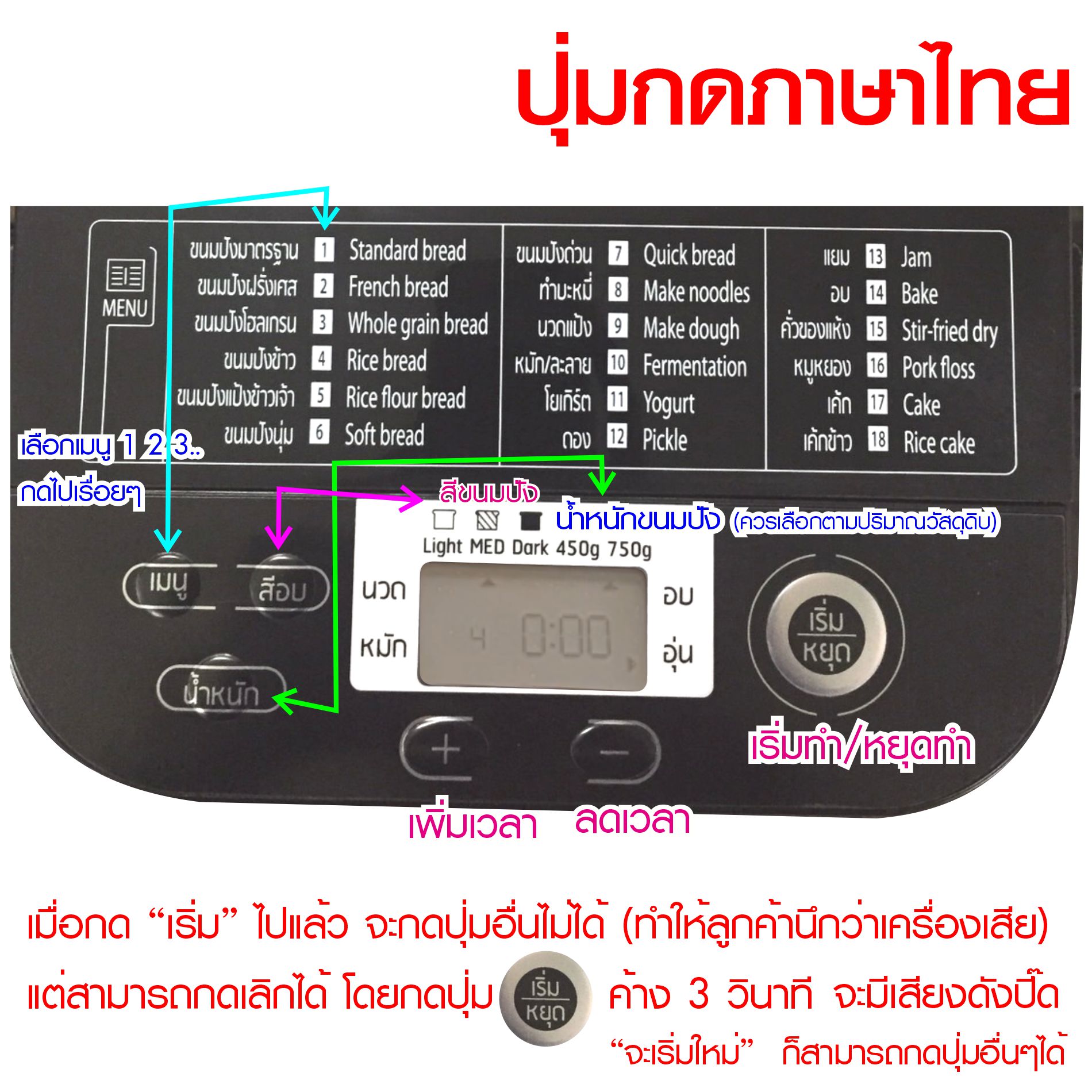 - ทำขนมปังสูงสุด 1.5 ปอนด์(750กรัม)
