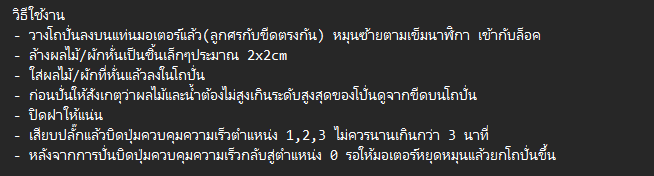 ใช้ปั่นน้ำผลไม้และบดสับอาหาร