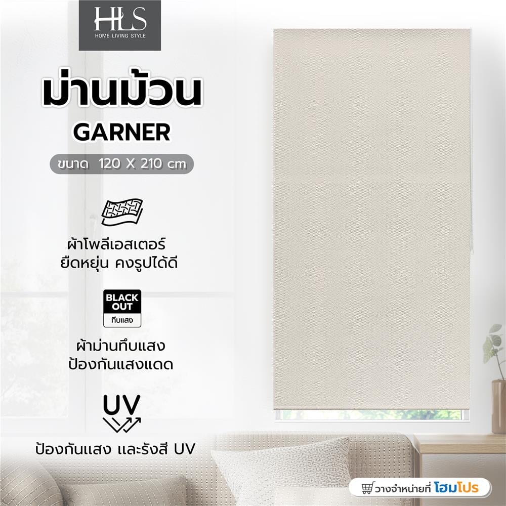 ม่านม้วน HOME LIVING STYLE GARNER 120X210 ซม. สีครีม