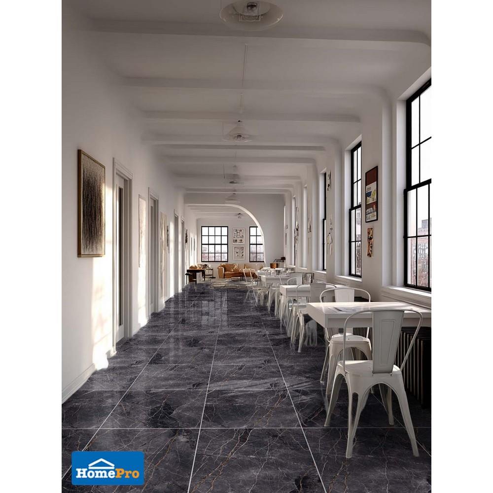 ผลิตจากพอร์ซเลนคุณภาพดี เนื้อกระเบื้องมีความทนทานสูง ไม่เปราะง่าย และทนทานต่อรอยขีดข่วนได้ดี ลวดลายได้แรงบันดาลใจจากหินอ่อนสีดำ โดดเด่นด้วยเส้นแร่บนชั้นหิน ให้ความสวยงามเสมือนหินจริง พื้นผิวให้สัมผัสมัน และผ่านการเคลือบลวดลายอย่างดี ง่ายต่อการดูแลทำความสะอาด เหมาะสำหรับปูพื้นตกแต่งภายในบ้านหรืออาคาร เช่น ห้องรับแขก ห้องทำงาน ได้หลากหลายสไตล์
