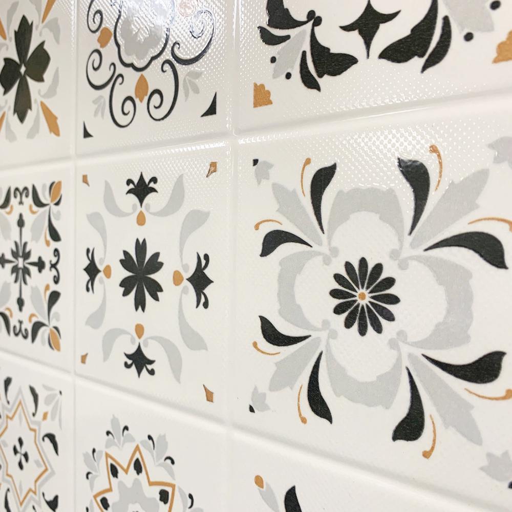 ผลิตจากเซรามิกคุณภาพดี เนื้อแน่น ไม่เปราะง่าย รองรับน้ำหนักได้ดี ทนทานต่อการเสียดสีและการขูดขีด ดีไซน์ลวดลายกลิ่นอายสไตล์ชิโนโปรตุกีส สะท้อนความมีเอกลักษณ์เฉพาะ เพิ่มความแตกต่าง ผ่านการเคลือบลวดลายเป็นอย่างดี พื้นผิวสัมผัสมัน ทำให้ดูแลรักษาและทำความสะอาดได้ง่าย เหมาะสำหรับใช้ในการปูพื้นตกแต่งภายในอาคาร เช่น ห้องนั่งเล่นหรือห้องนอน