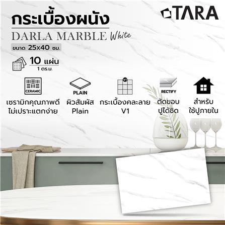 กระเบื้องผนัง 25x40 ซม. TARA ดาร์ล่า มาร์เบิล ไวท์ A 1 ตร.ม.