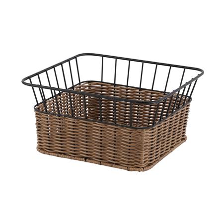 ตัวตะกร้าผลิตจากพลาสติก PP และโครงสร้างเหล็กพ่นสีดำ ช่วยเพิ่มความแข็งแรงและมั่นคง ลวดลายหวายเทียม ช่วยเพิ่มความสวยงามและอบอุ่น เหมาะกับการตกแต่งหลากหลายสไตล์ ดีไซน์ขอบกั้นสูง และมีความโปร่ง ช่วยป้องกันสิ่งของตกหล่น ระบายอากาศได้ดี น้ำหนักเบา สามารถยกหรือเคลื่อนย้ายไปวางในตำแหน่งต่างๆ ได้ง่าย ช่วยจัดเก็บสิ่งของให้เป็นระเบียบ ดูสะอาดตา และช่วยเพิ่มพื้นที่ใช้สอยบนเคาน์เตอร์ หรือชั้นวาง
