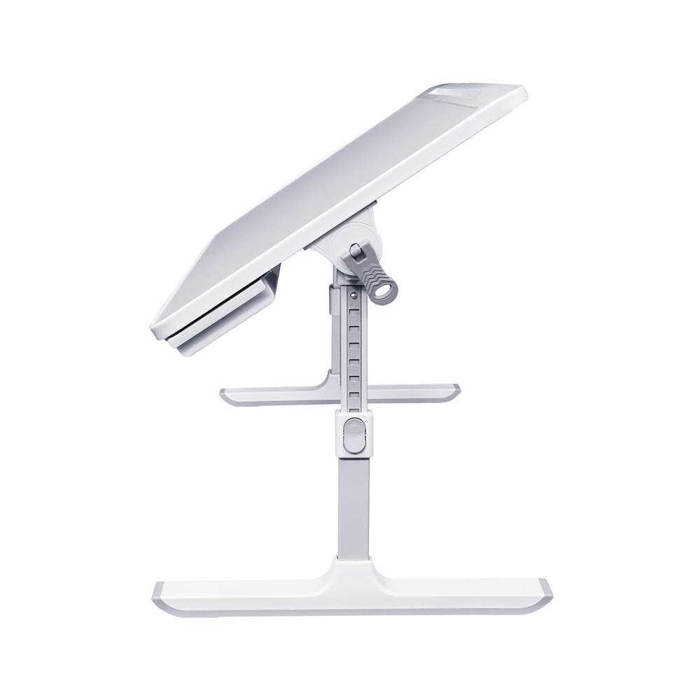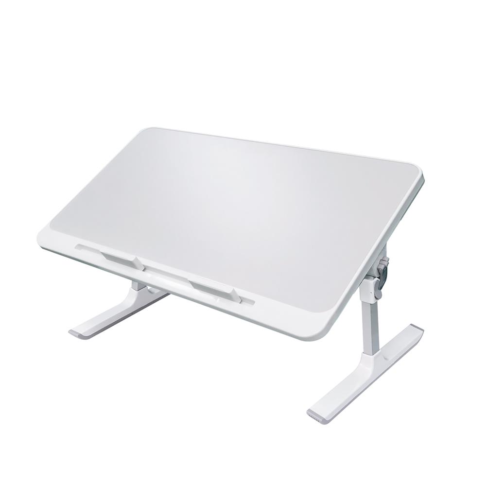 วัสดุหน้าโต๊ะทำจาก MDF มีความเรียบเนียน รองรับน้ำหนักสิ่งของที่วางได้ 20 กก. (แบบกระจายน้ำหนัก) ขอบโต๊ะปิดด้วยพลาสติก PP ขาวเรียบ ช่วยเพิ่มความสวยงาม ป้องกันการกระแทกและเสริมความทนทาน ปรับองศาความลาดเอียงได้ตั้งแต่ 0 องศา, 12 องศา, 24 องศาและ 36 องศา เพื่อการใช้งานที่เหมาะสม มีถาดเก็บของเล็กด้านข้าง เหมาะสำหรับเก็บอุปกรณ์เครื่องเขียนหรือสิ่งของขนาดเล็กหยิบใช้งานสะดวก สามารถปรับความสูงได้ถึง 8 ระดับ สามารถกางใช้งานได้ทั้งบนโต๊ะทำงาน, วางบนที่นอน หรือตั้งบนพื้น ขาโต๊ะทำจากอะลูมิเนียมแข็งแรง พับเก็บได้ง่าย ทำให้สะดวกในการจัดเก็บ ประหยัดพื้นที่และพกพาได้