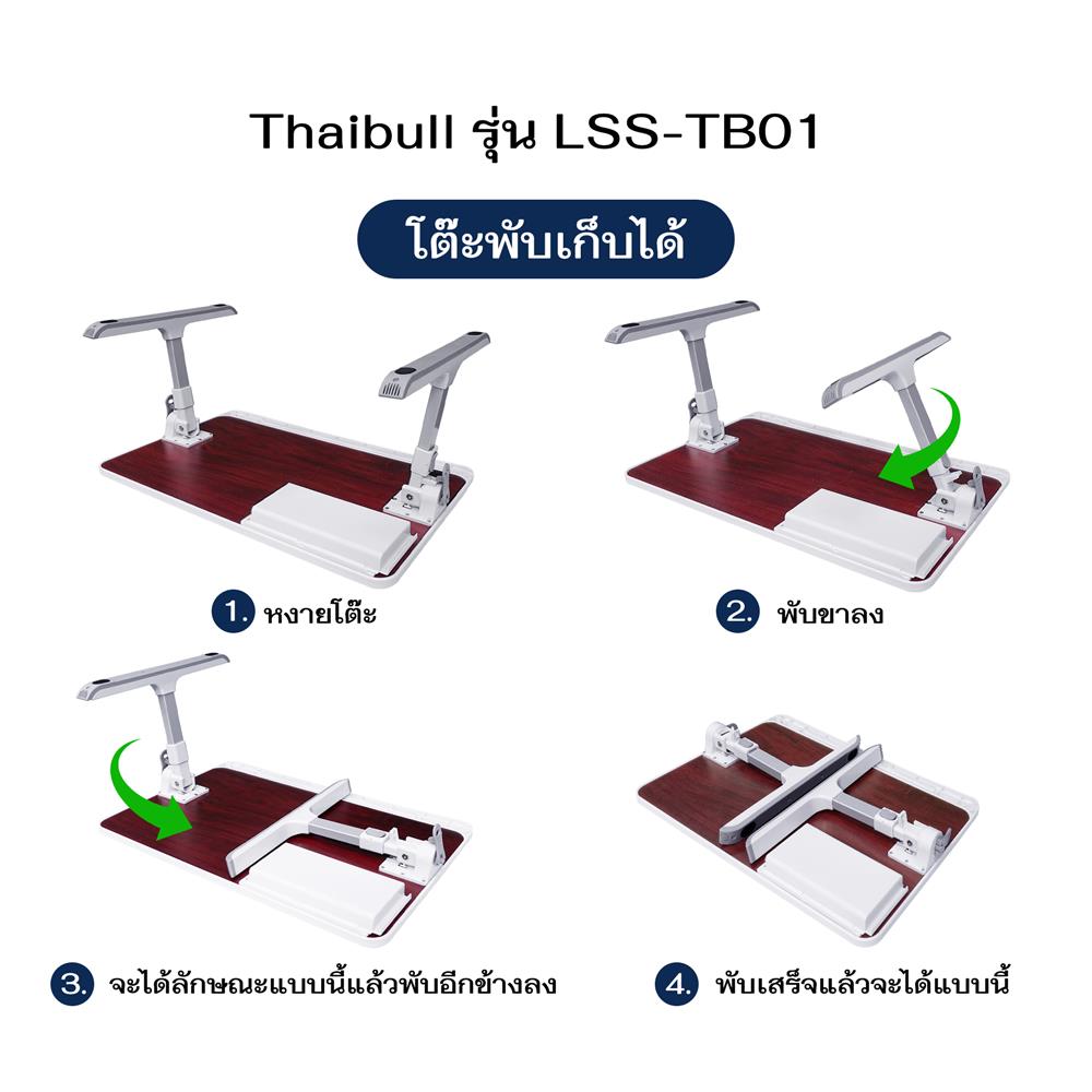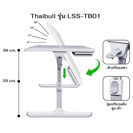 โต๊ะอเนกประสงค์ THAIBULL LSS-01 40 ซม. สีขาวตอบโจทย์ชีวิตยุคใหม่ของคุณ ไม่ว่าจะเป็นการทำงานจากที่บ้าน เรียนออนไลน์ หรือแม้กระทั่งพักผ่อนอ่านหนังสือ ด้วยโต๊ะอเนกประสงค์พับได้ THAIBULL รุ่น LSS-01 ที่ออกแบบมาให้คุณวางบนโต๊ะ, วางบนพื้น หรือจะใช้งานขณะนอนบนที่นอนก็สามารถปรับระดับได้ อีกทั้งหน้าโต๊ะปรับองศาความลาดเอียงได้ ช่วยลดการปวดเมื่อยคอ บ่า ไหล่ เหมาะสำหรับวางโน้ตบุ๊ก อ่านหนังสือ หรือเขียนงานได้อย่างสบายตา ไม่ต้องก้มให้เมื่อย