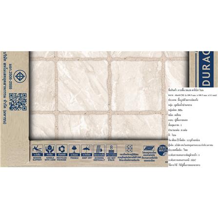 กระเบื้องพื้น 16x16 นิ้ว DURAGRES ฮากีบิส โบน A 0.96 ตร.ม.สนุกกับการตกแต่งพื้นที่ภายในบ้าน ด้วยกระเบื้องพื้น จากแบรนด์ DURAGRES ที่คัดสรรเซรามิกคุณภาพเยี่ยม เนื้อกระเบื้องทนทาน ไม่เปราะง่าย และทนต่ออุณหภูมิหรือสภาพอากาศที่เปลี่ยนแปลงได้เป็นอย่างดี ดีไซน์ลวดลายสวยงามเป็นเอกลักษณ์ สามารถเข้ากับการตกแต่งภายนอกบ้านได้หลากหลายสไตล์ได้อย่างลงตัว *กระเบื้อง Random Pattern 3 ลาย แต่ละแผ่นจะมีลวดลายและสีที่แตกต่างกัน เพื่อความสวยงามและเป็นธรรมชาติ *หน่วยบรรจุ : จำหน่ายเป็นกล่อง บรรจุจำนวน 6 แผ่น/กล่อง