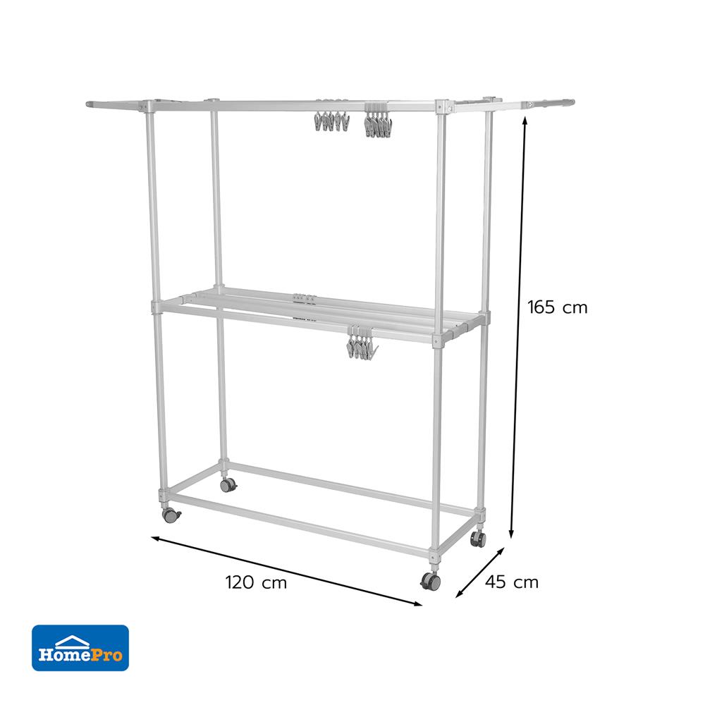 - มีราวแขวนทั้งหมด 7 เส้น (บน 3 เส้น และกลาง 4 เส้น) พร้อมปีกด้านข้าง 2 ฝั่ง สามารถกางและพับเก็บได้ช่วยเพิ่มพื้นที่การตาก