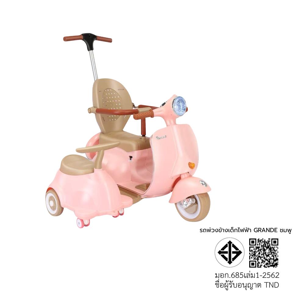 รถพ่วงข้างเด็กไฟฟ้า GRANDE สีชมพูรถพ่วงข้างเด็กไฟฟ้า GRANDE ของเล่นชิ้นโปรดที่จะพาเด็ก ๆ ท่องไปในโลกกว้างอย่างสนุกสนาน ด้วยดีไซน์แบบสามล้อที่มั่นคง และมอเตอร์ที่ขับเคลื่อนให้รถเคลื่อนที่ด้วยความเร็วที่ปลอดภัย สามารถควบคุมรถอย่างง่ายดายด้วยปุ่มสวิตช์ และคันเร่งที่ออกแบบมาให้เหมาะสำหรับเด็ก ช่วยเสริมสร้างพัฒนาการด้านการเคลื่อนไหว และมอบความบันเทิงให้กับลูกน้อยของคุณ