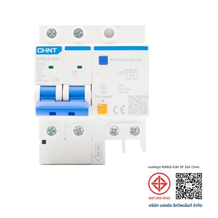 เมนเบรกเกอร์กันดูด 32 แอมป์ 2 โพล CHINT NXBLE-63Hเบรกเกอร์กันดูด CHINT รุ่น NXBLE-63 มาพร้อมพิกัดกระแส 32A และระบบตัดไฟรั่วไว 30mA มั่นใจในความปลอดภัยด้วยค่าตัดกระแสลัดวงจรสูงสุด 10kA และรองรับการตัด-ต่อกระแสรั่วได้ถึง 630A ตรวจจับไฟรั่วแบบ AC ได้อย่างแม่นยำ ติดตั้งง่ายด้วยราง DIN พร้อมมาตรฐานสากล IEC/EN 60898-1 และระดับการป้องกัน IP20 ปลอดภัย ครบทุกฟังก์ชันในหนึ่งเดียว เพื่อบ้านและธุรกิจที่คุณไว้วางใจ