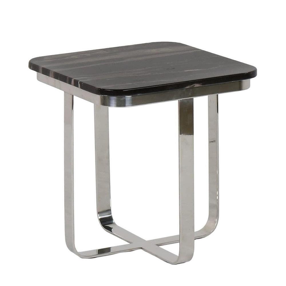 หน้าโต๊ะทำจากหินธรรมชาติมีลวดลายและเอกลักษณ์เฉพาะตัว ให้ความรู้สึกหรูหราเย็นสบาย โครงสร้างขาทำจากสเตนเลสคุณภาพสูง ทนทานต่อการกัดกร่อน รองรับน้ำหนักสิ่งของได้ดี ขนาดกะทัดรัด เหมาะสำหรับเป็นโต๊ะข้างโซฟา โต๊ะข้างเตียง หรือใช้เป็นพื้นที่วางของตกแต่ง รูปทรงสี่เหลี่ยมโค้งมน จัดวางเข้ากับโซฟาได้หลายแบบ เติมเต็มห้องนั่งเล่นให้สมบูรณ์แบบ