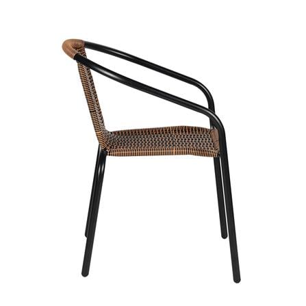 โครงผลิตจากเหล็กขัดผิวเรียบพ่นสี มีความแข็งแรง ทนทานต่อสภาพอากาศที่เปลี่ยนแปลงได้ โครงสร้างมั่นคงแข็งแรง สามารถรับน้ำหนักผู้ใช้งานได้มากถึง 120 กก. (แบบกระจายน้ำหนัก) เบาะนั่งและพนักพิงถักด้วยหวาย PE ให้สัมผัสที่นุ่มนวลและยืดหยุ่น โอบรับสรีระได้เป็นอย่างดี มาพร้อมจุกรองกันลื่นบริเวณขาเก้าอี้ เพิ่มความมั่นคงและป้องกันการเกิดรอยขีดข่วนบนพื้นผิว น้ำหนักเบา เคลื่อนย้ายสะดวก เหมาะวางระเบียงคอนโด รีสอร์ท อะพาร์ตเมนต์ หรือร้านอาหาร