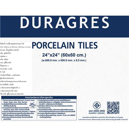 กระเบื้องพื้นพอร์ซเลน 60x60 ซม. DURAGRES โซเอล ขาว A 1.44 ตร.ม.