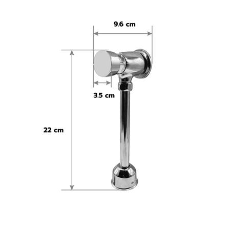 ผลิตจากทองเหลืองชุบโครเมียม ผิวเงางาม ทนทานต่อความชื้นและการกัดกร่อน ใช้น้ำเพียง 0.8 ลิตรต่อการฟลัชหนึ่งครั้ง ช่วยประหยัดน้ำได้อย่างมีประสิทธิภาพ สะดวกต่อการใช้งานด้วยปุ่มกด ชำระล้างได้สะอาดหมดจด สามารถถอดล้างทำความสะอาดได้ เหมาะสำหรับติดตั้งร่วมกับโถปัสสาวะชายและระยะการติดตั้งแบบท่อตรง