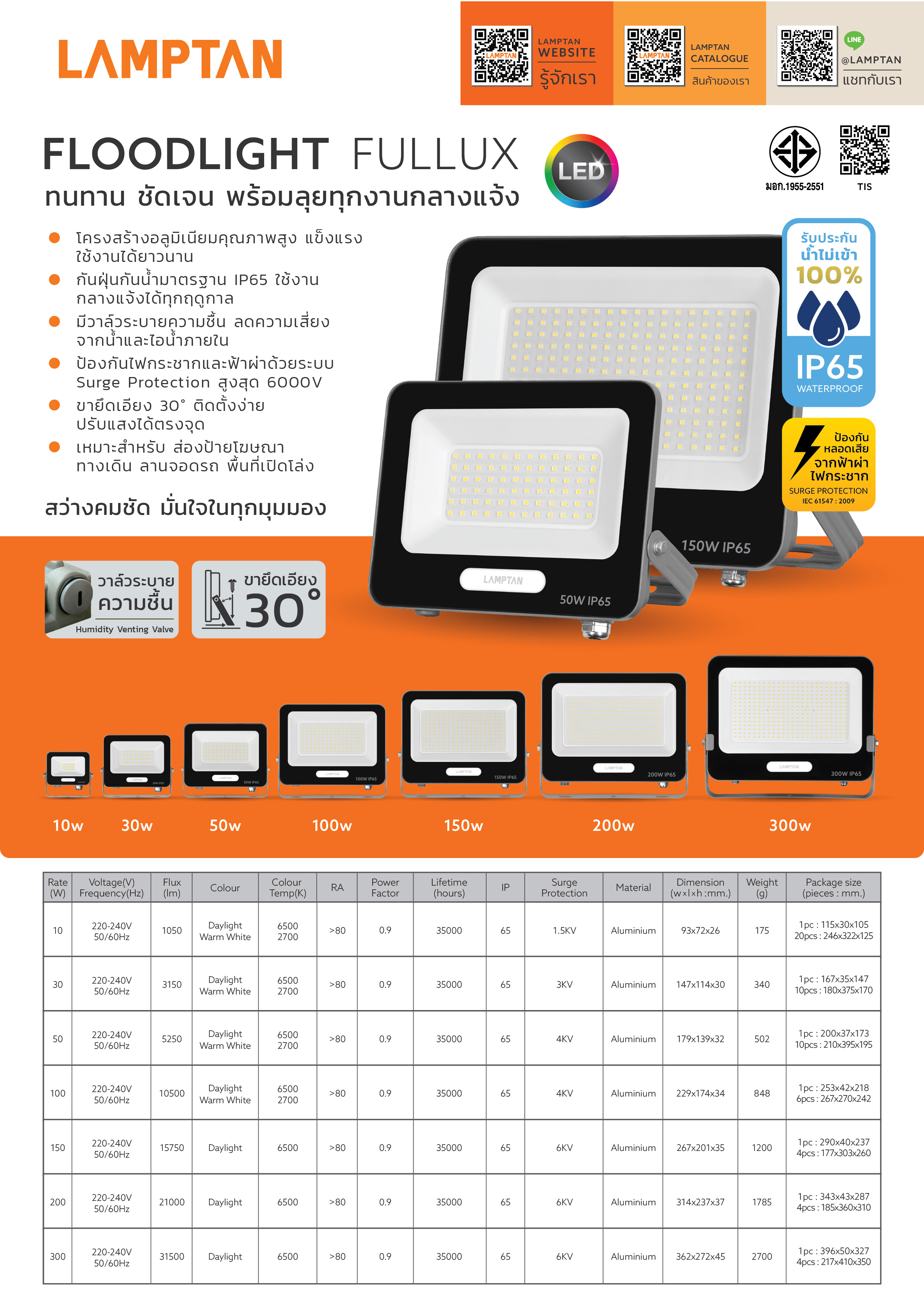 - ไฟสปอตไลท์ LED กำลังไฟ 30 วัตต์ ค่าความสว่าง 3,150 ลูเมน กระจายแสงสว่างได้ทั่วบริเวณ